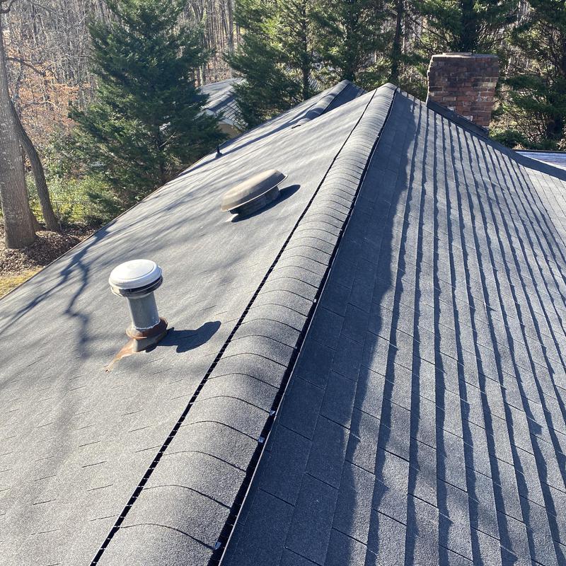 Nelson Roofing completed multiple roof repairs in Marietta, Georgia. The team replaced 2-inch pipe boot flashings and installed water diverters over 4-by-4 skylights. They used GAF slate architectural shingles that matched the existing roof color for a consistent appearance.